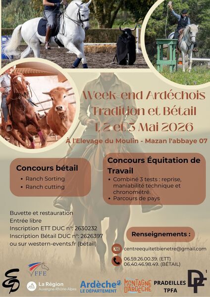 | 01/05/2026 | Equitations de Travail et Tradition | CENTRE EQUIT ET BIEN ETRE | 2630232 | 27/04/2026 |